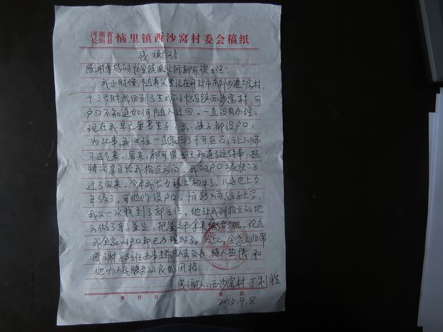 在办理完迁移户口后现在的老丁一脸愁云又找到郭可俊说因为想回老家现在两个孩子的户口都没有办理也没有出生证明怎么入户啊,郭可俊又闲不住与户政科、医院多次联系经过多日的办理将老丁的两个小孩办理了入户。现在的老丁终于笑了。今日高兴的老丁专门到县城订制了一面锦旗送到恼里派出所表达对户籍民警郭可俊的帮助。像这样的“闲事”很多;无论是东辛庄村村民杜云十七岁因为母亲离家出走父亲没有能力而没有户口难为的多次在户籍室哭啼,后来终于由“黑人”成为有户口的人;还是南杨庄村68岁的村民刘玉之因户籍年龄小十几岁而每次来户籍室就忧心忡忡,经多方查找恢复实际年龄变得喜上眉梢;还有因再婚而为小孩姓氏变更作难的东沙窝村民王喜梅,最后都满意的离开恼里派出所。